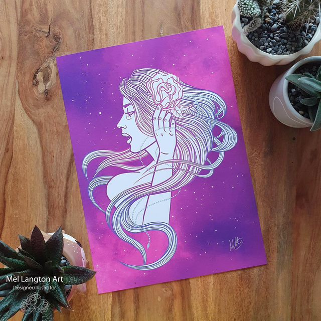 Embark on a mystical journey with my beautiful 'Celestial' A4 art print, featuring my own original digitally hand drawn illustration.