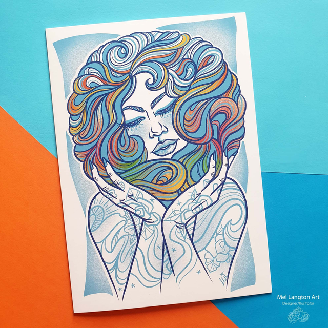 This beautiful card features my own design and is perfect to send, or even to keep and frame as a miniature piece of art.