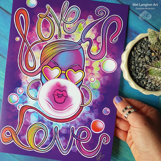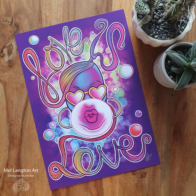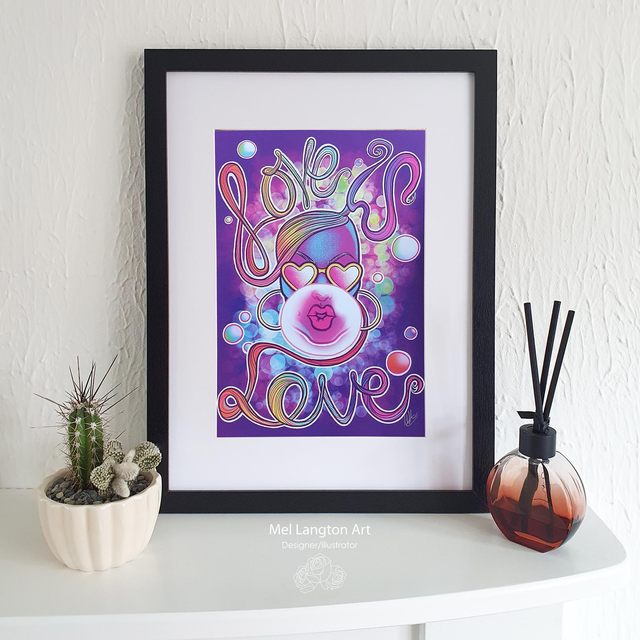 Let your walls shine bright and bold by adding my colour-popping 'Love is Love' A4 digital art print to your space. This vibrant reproduction of my own digitally hand-drawn artwork represents positivity and inclusivity, celebrating love in all its forms.