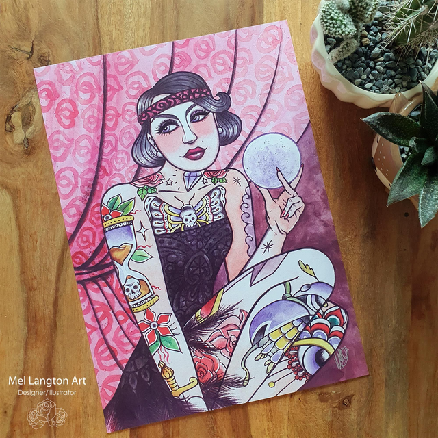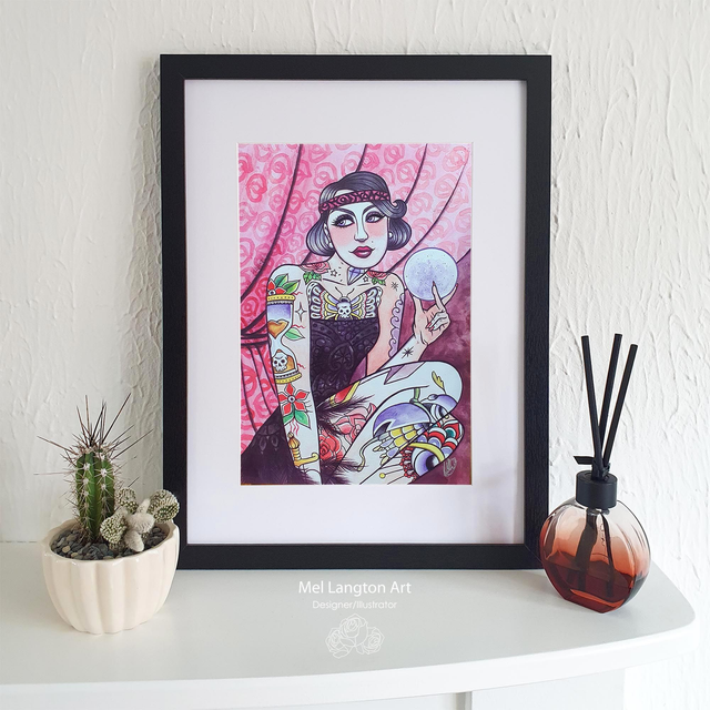 Perfect for lovers of vintage circus art, bohemian decor, tattoo art and mystical themes, this is a vibrant reproduction of my own original illustration.