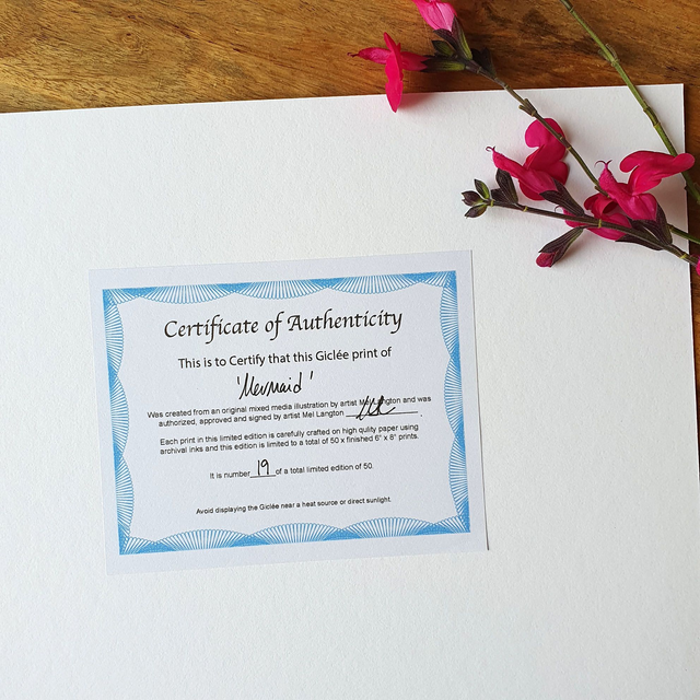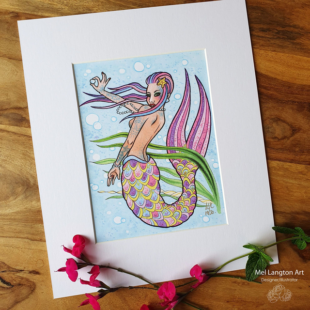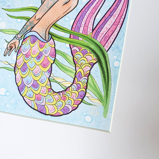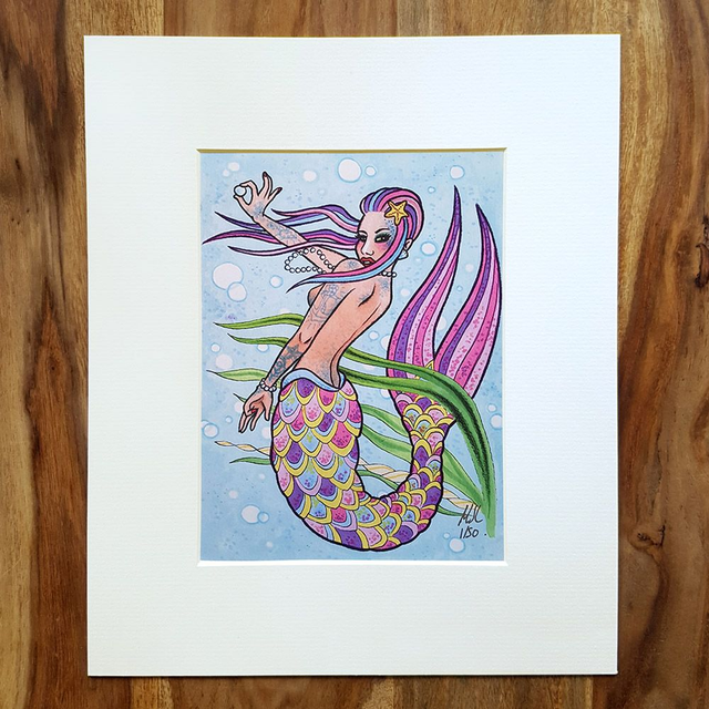 This unique limited edition 'Tattooed Mermaid' giclée features my own original artwork.